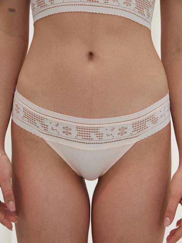 La ligne Palma a été conçue dans le respect de l'environnement grâce à sa dentelle, sa maille et ses fournitures recyclées principalement issues de chutes de production.