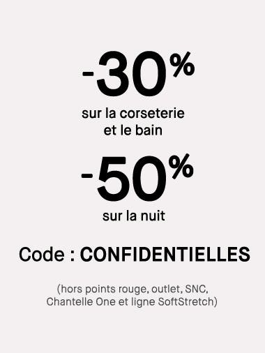 Profitez d'une offre rien que pour vous. Pyjamas, nuisettes à -50% et toute la corseterie et le bain à -30% !